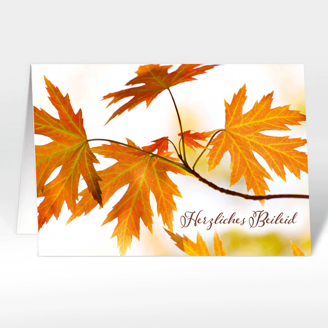 Design: "Ahorn-Blätter im Herbst". Format: A5 quer (21 x 14.8 cm), inkl. Standard-Couvert weiss C5