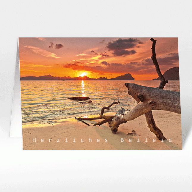 Design: "Abendstimmung am Meer" mit Sonnenuntergang. Format: A5 quer (21 x 14.8 cm), inkl. Standard-Couvert weiss C5