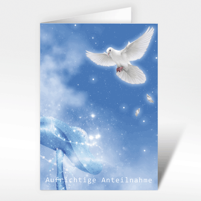 Design: "Himmelsbote" mit Taube am Himmel. Format: A5 hoch (14.8 x 21 cm), inkl. Standard-Couvert weiss C5