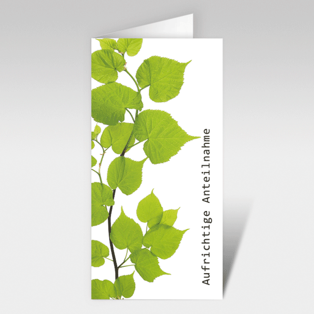 Design: "evergreen" Haselnusszweig mit Blätter in grün . Format: 10.5 x 21 cm, inkl. Standard-Couvert weiss C5/6