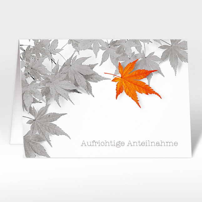 Design: "Fallendes Laub" mit Laub vom Ahornbaum. Format: A5 quer (21 x 14.8 cm), inkl. Standard-Couvert weiss C5