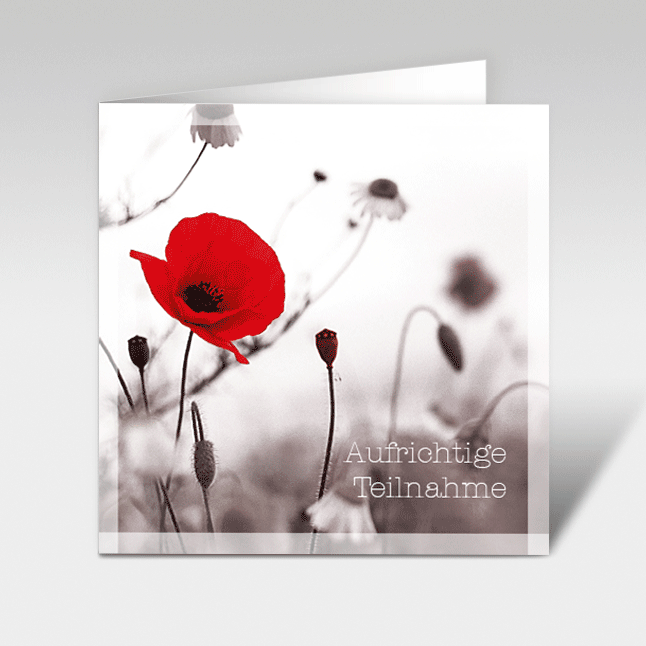 Design: "art of flowers" mit Mohnblumenfeld. Format: 15 x 15 cm, inkl. Standard-Couvert weiss 15.5 x 15.5 cm