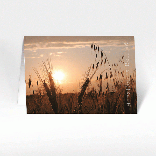 Design: "Abendlicht" mit Kornfeld, Sonnenuntergang. Format: A6 quer (14.8 x 10.5 cm), inkl. Standard-Couvert weiss C6