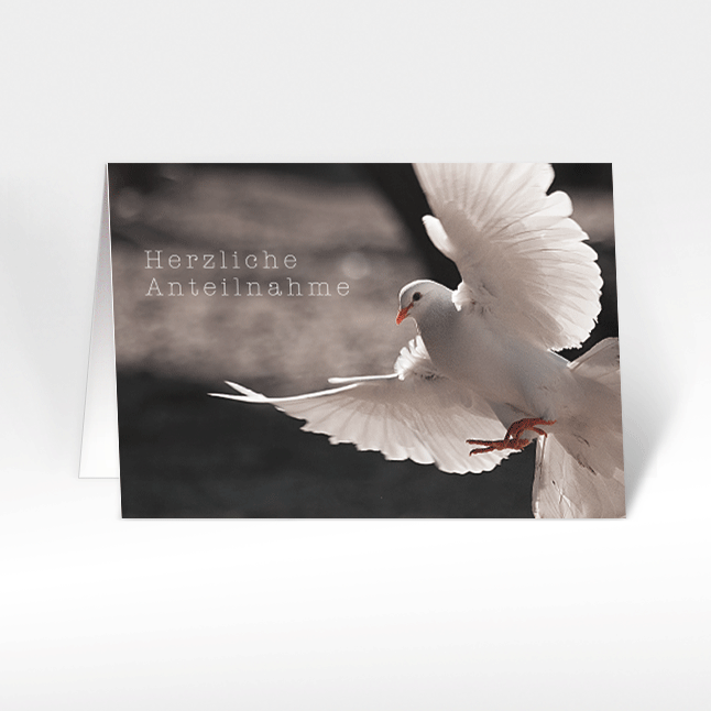 Design: "Friedenstaube" mit fliegender Taube. Format: A6 quer (14.8 x 10.5 cm), inkl. Standard-Couvert weiss C6
