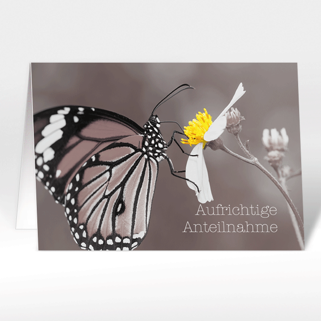 Design: "Naturstimmung" mit Schmetterling und Blume. Format: A5 quer (21 x 14.8 cm), inkl. Standard-Couvert weiss C5