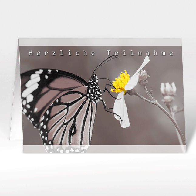 Design: "the life" mit Schmetterling und Blume. Format: A5 quer (21 x 14.8 cm), inkl. Standard-Couvert weiss C5